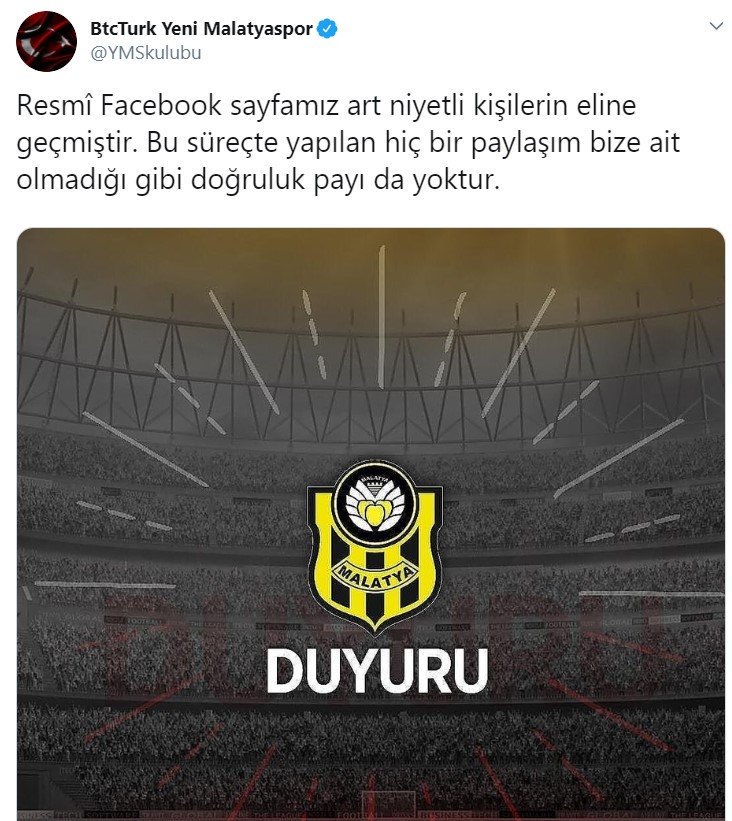 Trt Spor Pa Twitter Btcturk Yeni Malatyaspor Facebook Hesabinin Hacklendigini Ve Sergen Yalcin Ile Yollarin Ayrildigi Yonundeki Paylasimi Kendilerinin Yapmadigini Acikladi Https T Co Oajvx4t5dm